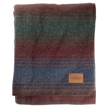 This cozy camp blanket from Pendleton Woolen Mill is 86% wool and 14% cotton. Inspired by the hombre stripe blankets carried on the saddles of cowboys. This classic design will fit with any decor. 90" x 90''.