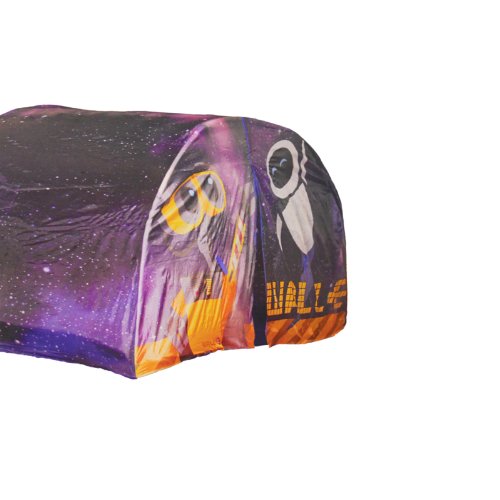 Get ready to make bed time an outer space adventure with this Wall-E Bed Tent. Featuring Wall-E and E.V.E dancing in space, this tent is perfect the little space cadet in your life. Made from 100% durable Polyester, this tent is easy to assemble and easy to clean. One size fits most twin beds and intended for indoor use. Purchase today!