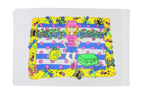 Standard size pillowcase decorated with girl's camping motif. Machine washable, 180 thread count, 50/50 cotton/polyester. These will be a big hit, so be sure to order enough to go around. Also available personalized. Just do a search for "Earmitts", "Pillowcase", and "Personalized"